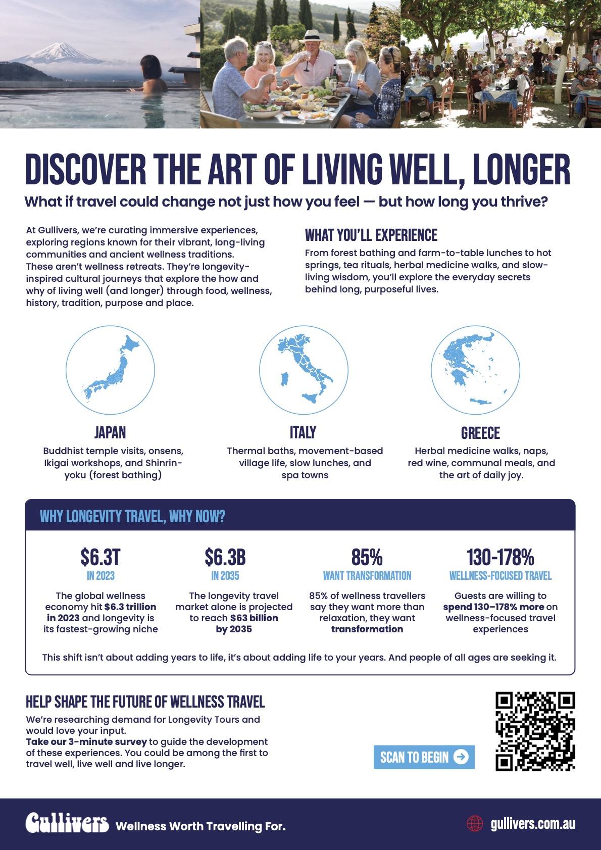 At Gullivers, we’re researching the demand for longevity inspired travel experiences.